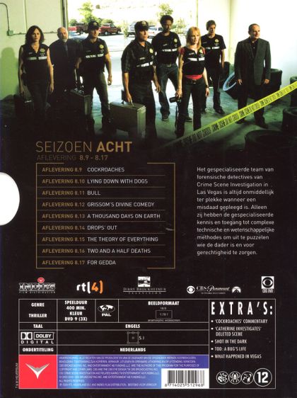 Het gespecialiseerde team van forensische detectives van Crime Scene Investigation in Las Vegas is altijd onmiddellijk ter plekke wanneer een misdaad gepleegd is. Alleen zij hebben de gespecialiseerde kennis en toegang tot complexe technische en wetenschappelijke methodes om uit te puzzelen wie de dader is en voor gerechtigheid te zorgen.CSI - Seizoen 2.2DISC 12.13 Identity Crisis2.14 The Finger2.15 Burden of Proof2.16 Primum Non NocereDISC 22.17 Felonious Monk2.18 Chasing the Bus2.19 Stalker2.20 Cats in the CradleDISC 32.21 Anatomy of a Lye2.22 Cross-Jurisdictions2.23 The Hunger Artist