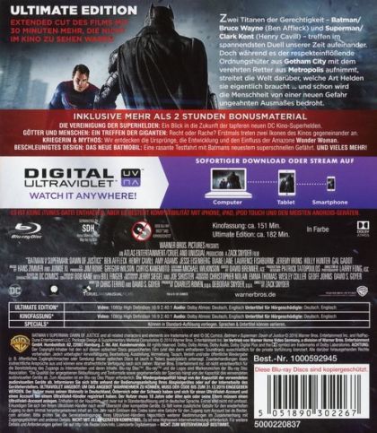 Fearing the actions of a god-like Super Hero left unchecked, Gotham City’s own formidable, forceful vigilante takes on Metropolis’s most revered, modern-day savior, while the world wrestles with what sort of hero it really needs. And with Batman and Superman at war with one another, a new threat quickly arises, putting mankind in greater danger than it’s ever known before.
