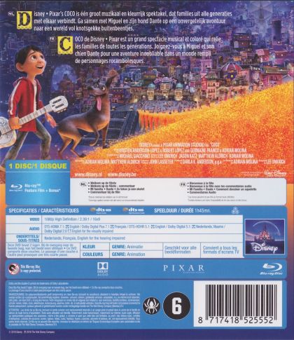 Despite his family’s baffling generations-old ban on music, Miguel dreams of becoming an accomplished musician like his idol, Ernesto de la Cruz. Desperate to prove his talent, Miguel finds himself in the stunning and colorful Land of the Dead following a mysterious chain of events. Along the way, he meets charming trickster Hector, and together, they set off on an extraordinary journey to unlock the real story behind Miguel's family history.