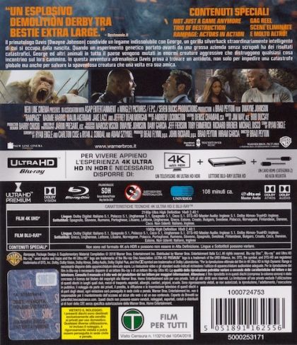 Primatologist Davis Okoye shares an unshakable bond with George, the extraordinarily intelligent, silverback gorilla who has been in his care since birth. But a rogue genetic experiment gone awry mutates this gentle ape into a raging creature of enormous size. To make matters worse, it’s soon discovered there are other similarly altered animals. As these newly created alpha predators tear across North America, destroying everything in their path, Okoye teams with a discredited genetic engineer to secure an antidote, fighting his way through an ever-changing battlefield, not only to halt a global catastrophe but to save the fearsome creature that was once his friend.