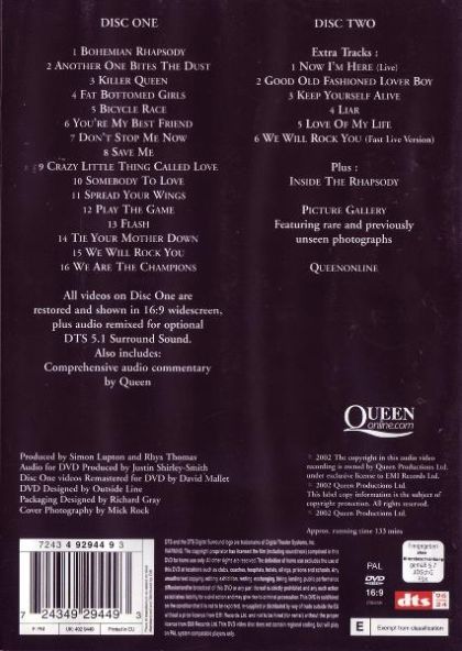 Greatest Video Hits 1 was the first Queen video collection on DVD. Most of the content was released previously on the VHS cassette Greatest Flix in 1981. It was released in October 2002, and included video hits of the band between 1973 and 1981. There is also a Greatest Video Hits 2. The DVD peaked at number one in UK, with sales of more than 90,000 copies. It was also the best selling DVD of the year in 2002. It was also number one in USA (platinum), Germany (gold), Spain and other countries. It was also 4 times platinum in Australia, 3 times platinum in Canada, platinum in Poland, and other places.