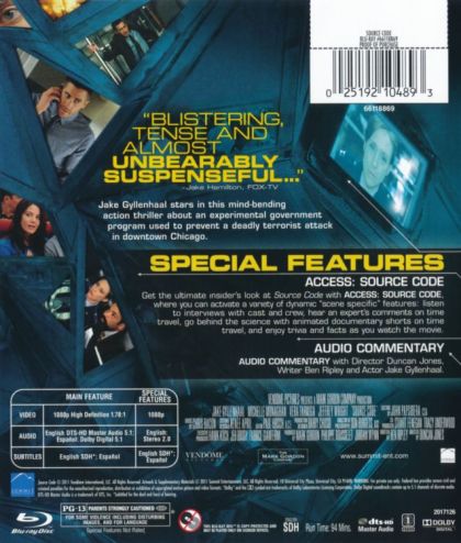 When decorated soldier Captain Colter Stevens wakes up in the body of an unknown man, he discovers he's part of a mission to find the bomber of a Chicago commuter train. In an assignment unlike any he's ever known, he learns he's part of a government experiment called the "Source Code," a program that enables him to cross over into another man's identity in the last 8 minutes of his life. With a second much larger target threatening to kill millions in downtown Chicago, Colter re-lives the incident over and over again, gathering clues each time, until he can solve the mystery of who is behind the bombs and prevent the next attack.
