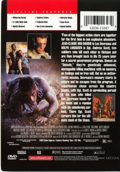 An American soldier who had been killed during the Vietnam War is revived 25 years later by the military as a semi-android, UniSols, a high-tech soldier of the future. After the failure of the initiative to erase all the soldier's memories, he begins to experience flashbacks that are forcing him to recall his past.
