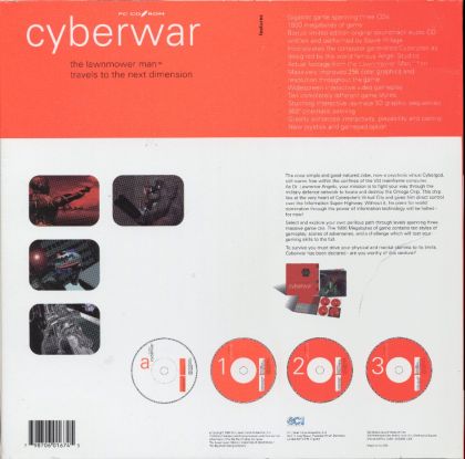 Cyberwar is based on the movie The Lawnmower Man and is set after its ending. The player takes the role of Dr. Lawrence Angelo who once again has to defeat the corrupted Jobe. Gameplay is similar to its predecessor and consists of several mini games which are all based on the movie's virtual reality segments. Pre-rendered movies are streamed from the disc and require the player to press left or right at the appropriate second. There are also some puzzles like entering a code.
