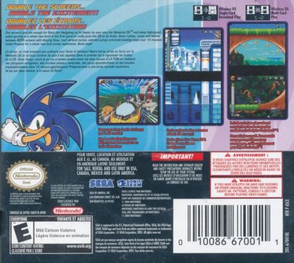 SEGA's popular blue dude with a 'tude, Sonic the Hedgehog, blasts his way onto the Nintendo® DS and takes high-speed action gaming to a whole new level. The fastest hedgehog in the world is now pairing up with a mysterious character named Blaze the Cat. This dynamic duo heads out in search of the powerful and dangerous Sol Emeralds to ensure that they do not fall into the wrong hands. In their quest, Sonic and Blaze must battle all-new enemies, and as they do, ripple effects will change the events of their worlds' inhabitants.
