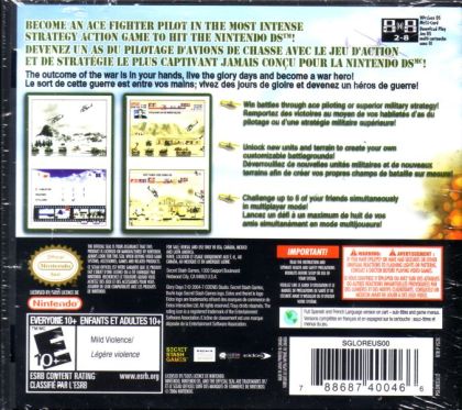 Cutting edge technologies have been incorporated with impressive AI to ensure both human and weapon behavioral implementation to present a sense of awareness and reality. Glory Days 2 DS - Brotherhood of Men also takes full advantage of the Nintendo DS's dual screens, with innovative touch screen direction of the action ... flying and directing your helicopter, V2 and drone via touch screen and pad, whilst control of your plane is through the pad only for maximum quick input - has never been so exciting, spontaneous and precise.