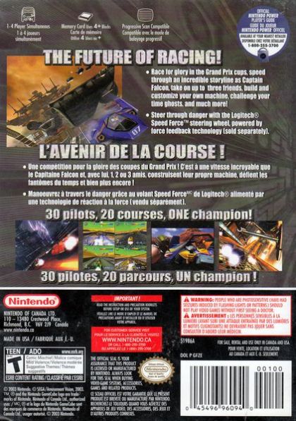 Nintendo and SEGA—both accomplished masters of high-speed fun—have collaborated to create the fastest, most visually stunning racing game ever! F-Zero GX is the race to end all races, as fearless pilots risk everything to claim the title of the top speedster in the universe. Captain Falcon and 29 other pilots head to exotic star cities, like the neon-lit Mute City, lush Green Plant, wealthy Port Town and the storm-wracked streets of Lightning to race at supersonic speeds. In addition, players can save their racer to a Memory Card and race with it at arcades on F-Zero AX.