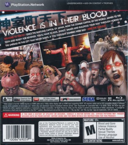 Immerse yourself in the Kamurocho experience as the true to life recreation of Tokyo's sin-city district faces its greatest threat. Unravel the story as you play through the eyes of four characters, form alliances, and work together to save Japan from the zombie apocalypse.