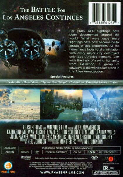 For years, UFO sightings have been documented around the world. What were once mere sightings have now become brutal attacks of epic proportions. As the human race faces total annihilation with every major city destroyed only Los Angeles remains. Left with the task of saving humanity from extinction, a group of cowboys is the world s last stand in this Alien Armageddon.