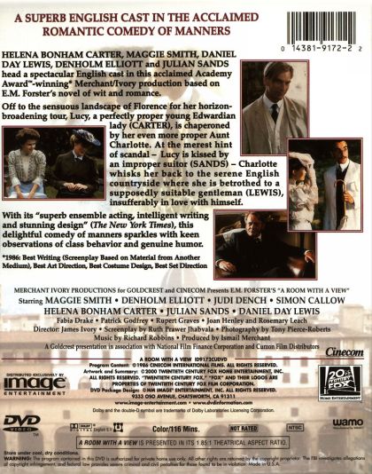 When Lucy Honeychurch and chaperon Charlotte Bartlett find themselves in Florence with rooms without views, fellow guests Mr Emerson and son George step in to remedy the situation. Meeting the Emersons could change Lucy's life forever but, once back in England, how will her experiences in Tuscany affect her marriage plans? Nominated for eight Academy Awards (1986), including Best Picture, and winner of three, this is one the most charming and delightful romantic comedies ever filmed.