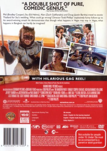 The Hangover crew heads to Thailand for Stu's wedding. After the disaster of a bachelor party in Las Vegas last year, Stu is playing it safe with a mellow pre-wedding brunch. However, nothing goes as planned and Bangkok s the perfect setting for another adventure with the rowdy group.