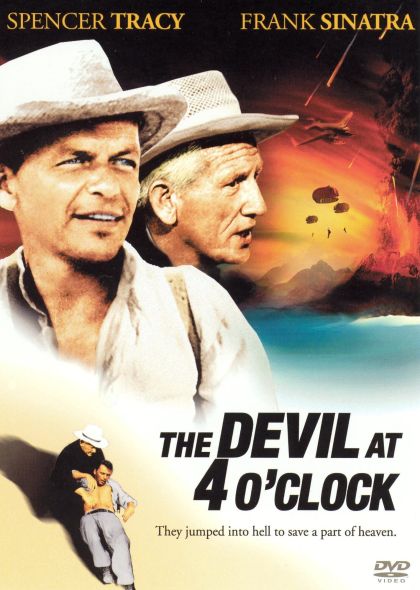 Spencer Tracy plays an American priest tending to the natives of a South Sea island. A plane carrying three convicts -- Harry (Frank Sinatra), Marcel Gregoire Aslan and Charlie Bernie Hamilton) -- lands on the island; Father Doonan (Tracy) manages to enlist their (reluctant) aid in working at a children's hospital. When the island falls victim to a series of earthquakes, Father Doonan and the convicts work together to evacuate the hospital staff and the children. Harry, the least cooperative of the prisoners, becomes a hero during a volcanic eruption by going back to rescue the priest, who with convict Charlie has been holding a bridge in order to allow the others to escape. Father Doonan and the two convicts are killed, but all the children are rescued. Blighted by bad special effects and ponderous direction, Devil at Four O'Clock is less interesting than the behind-the-scenes rumors concerning the friction between Spencer Tracy and Frank Sinatra.
