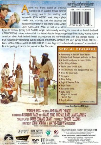 Hondo Lane (John Wayne) is a rider for the U.S. Army Cavalry. He finds Angie Lowe (Geraldine Page) and her son struggling in the unfriendly Apache Territory. She is convinced that since the Apaches under Chief Vittorio (Michael Pate) have never raided her land that she and her family are safe from attack. Hondo is smitten with her and vows to keep an eye out for them and their well-being. On a later ride, Hondo runs into the estranged husband of the woman (Leo Gordon) and in a struggle Hondo kills him, unaware that he is the husband of Angie. Hondo is captured shortly after by Vittorio and the Apaches. Risking her own life and family, Angie comes to the aid of Hondo by telling the Apache chief that Hondo is her husband. Hondo goes along with the ruse, only to realize that the truth about killing her husband and his feelings for her must come out to the chief and to Angie.