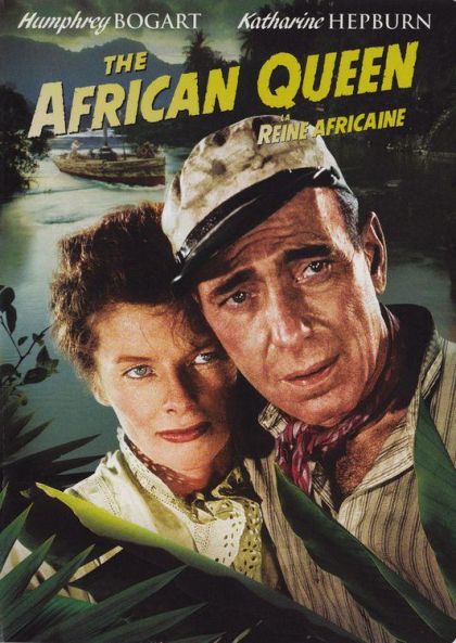 Rose and Samuel Sayer (Katherine Hepburn and Robert Morley) are a brother/sister missionary team in Africa. Charlie Allnut (Humphrey Bogart) delivers their mail, supplies, and news of the outside world. It's 1914, and World War I has already started in Europe. The Germans are invading parts of Africa, but the Sayers won't leave and are eventually found by the Germans. Samuel dies. Charlie convinces prim and proper Rose to leave with him on his boat "The African Queen". He warns her of a German ship guarding an area they will have to pass through, but Rose says they'll turn the boat into a torpedo and blow up the German ship. On the trip down river, the couple deal with rapids, a German fort, and boat trouble, but they also fall in love. They outfit the Queen to blow up the German ship, but before it does, they are captured by the Germans. The captain marries them before the ship hits a floating chunk of the Queen and explodes. Charlie and Rose, now married, swim away.