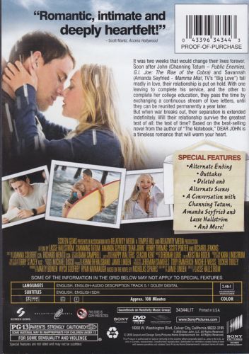 Dear John is a love story centered around John (Channing Tatum) and Savannah (Amanda Seyfried) and set in the southern US in the late 90s. John is a soldier home on leave and Savannah is a college student home on spring break when they meet and fall in love over the course of a week. After that week together, John and Savannah know they were meant to be together and even though John's next deployment will last a year, they begin a relationship. When the September 11, 2001 terrorist attack on the US happens and John re-enlists for another tour of duty their love and commitment to one another will be tested.
