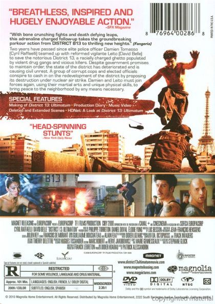 In a near future, the city of Paris has walled off minorities from the white population. As a result the communities fall under a powerful criminal and gang force. District 13 is among the most chaotic and the government under the President of the Reublique (Philippe Torreton) wants to gain control over the anarchy. He sends in Captain Damien Tomaso (Cyril Raffaelli) who teams up again with his inside man Leito (David Belle). They must convince or create peace before the government leader named Walter Gassman (Daniel Duval) decides to blow up the entire ghetto. Worse yet, the two must must rescue a famous painting from destruction.