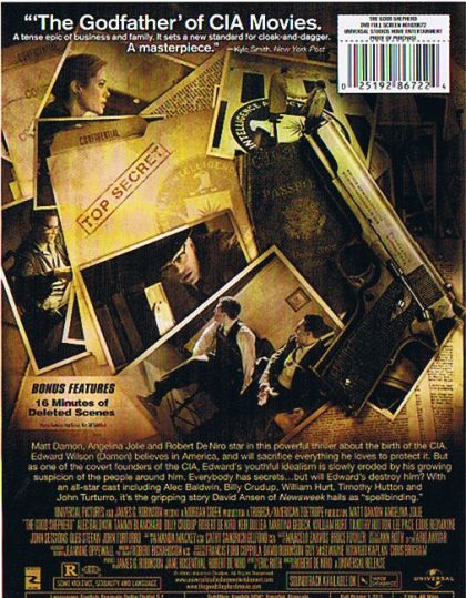Edward Wilson, the only witness to his father's suicide and member of the Skull and Bones Society while a student at Yale, is a morally upright young man who values honor and discretion, qualities that help him to be recruited for a career in the newly founded OSS. His dedication to his work does not come without a price though, leading him to sacrifice his ideals and eventually his family.