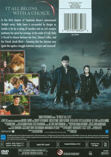 Bella once again finds herself surrounded by danger as Seattle is ravaged by a string of mysterious killings and a malicious vampire continues her quest for revenge. In the midst of it all, she is forced to choose between her love for Edward and her friendship with Jacob, knowing that her decision has the potential to ignite the ageless struggle between vampire and werewolf. With her graduation quickly approaching, Bella is confronted with the most important decision of her life.