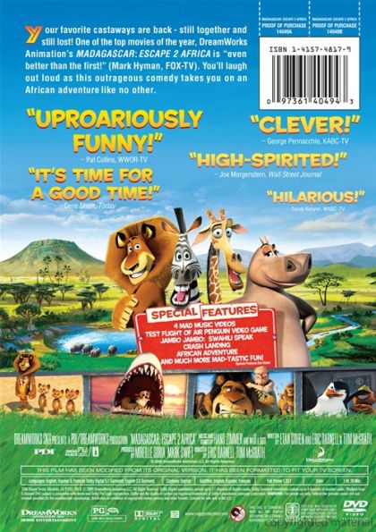 Alex, Marty, and other zoo animals find a way to escape from Madagascar when the penguins reassemble a wrecked airplane. The precariously repaired craft stays airborne just long enough to make it to the African continent. There the New Yorkers encounter members of their own species for the first time. Africa proves to be a wild place, but Alex and company wonder if it is better than their Central Park home.