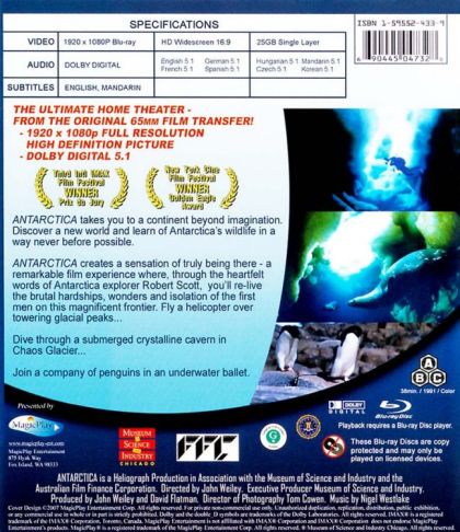 This large format film explores the last great wilderness on earth. It takes you to the coldest, driest, windiest continent, Antarctica. The film explores the life in Antarctica, both for the animals that live their and the scientist that work there.