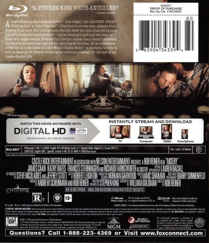 After an accident, acclaimed novelist Paul Sheldon is rescued by a nurse who claims to be his biggest fan. Her obsession takes a dark turn when she holds him captive in her remote Colorado home and forces him to write back to life the popular literary character he killed off.