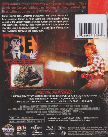A lone drifter stumbles upon a unique pair of sunglasses that reveal aliens are systematically gaining control of the Earth by masquerading as humans and lulling the public into submission.