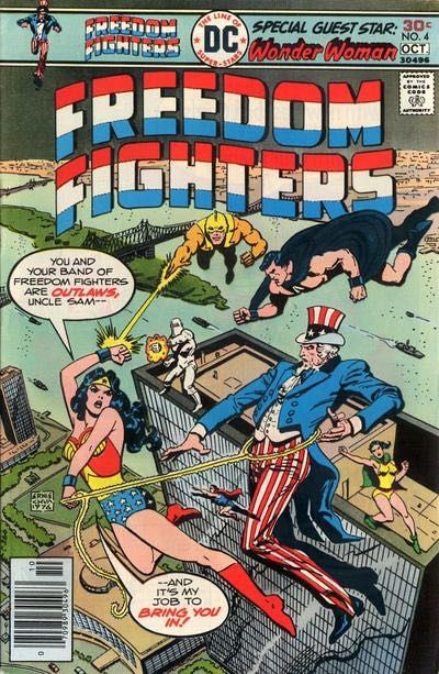 The Freedom Fighters battle Wonder Woman due to a misunderstanding, then face King Samson, who has gone berserk after accidentally killing his own mother.