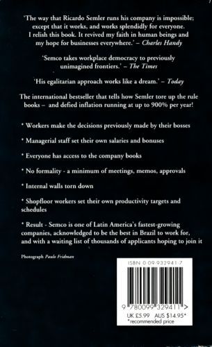 How would you like to work in a company that has no receptionists, secretaries, standard hierarchies, dress codes, or executive perks ... a company that lets you set your work hours and even your salary, and asks you to review your boss...a company whose ways of doing business are totally opposite those of most corporations? How would you like to work in a company that not only breaks all the rules, but succeeds? Can't be done, you say? In 1980 21-year-old Ricardo Semler took over the reins of the company his father founded and built. Ricardo proceeded to break every rule of doing business, firing an entire echelon of upper-level managers. Once he opened the floodgates to change, Semler never - even when he was tempted to - closed them again.