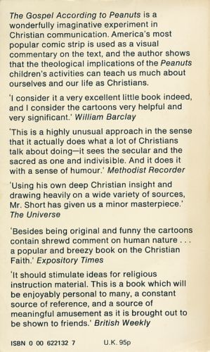 In this unique, engaging book Robert Short examines the insights to be found in the comic strip Peanuts and makes an expanded comment on these wonderfully imaginative parables of our times. Highlighting his remarks with selected cartoons, Short looks at the antics of Charlie Brown, Snoopy, Lucy, Linus, et al. from a Christian perspective, revealing a surprisingly prophetic meaning behind their otherwise hilarious activities. While these lovable cartoon characters have enjoyed an almost unparalleled popularity--becoming pop culture icons of the highest order and entering the global consciousness practically as family members--Short's book also has found a place in the hearts of many readers. Whether coming to the book for the first time or taking a second look, a delightful experience awaits in this modern-day guide to the Christian faith, fully illustrated with Peanuts.