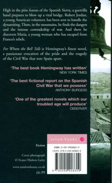 In 1937 Ernest Hemingway traveled to Spain to cover the civil war there for the North American Newspaper Alliance. Three years later he completed the greatest novel to emerge from "the good fight," For Whom the Bell Tolls. The story of Robert Jordan, a young American in the International Brigades attached to an antifascist guerilla unit in the mountains of Spain, it tells of loyalty and courage, love and defeat, and the tragic death of an ideal. In his portrayal of Jordan's love for the beautiful Maria and his superb account of El Sordo's last stand, in his brilliant travesty of La Pasionaria and his unwillingness to believe in blind faith, Hemingway surpasses his achievement in The Sun Also Rises and A Farewell to Arms to create a work at once rare and beautiful, strong and brutal, compassionate, moving and wise.