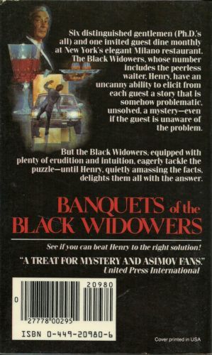 This book is the fourth of six that describe mysteries solved by the Black Widowers, based on a literary dining club he belonged to known as the Trap Door Spiders. It collects twelve stories by Asimov, together with a general introduction and an afterword following each story by the author. Nine of the stories were previously published; "The Driver," "The Wrong House" and "The Intrusion" are new to this collection. Each story involves the club members' knowledge of trivia. Nearly every story here is about decoding a riddle, each of which provides a clue based on dying or last words, misunderstood words, forgotten words, or withheld words. A few are based on facts that are, perhaps, not generally known to the public Asimov was a frequent writer of popular science and his inclination to explain anything and everything for the general public carried over into other fields, such as history and sociology but all the mysteries play fair with the reader, who is given either enough information to figure out the solution or a satisfying conclusion that is based on previously given facts and personality qualities.