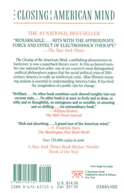 "THE BRILLIANT AND CONTROVERSIAL CRITIQUE OF AMERICAN CULTURE WITH NEARLY A MILLION COPIES IN PRINT" In 1987, eminent political philosopher Allan Bloom published "The Closing of the American Mind," an appraisal of contemporary America that "hits with the approximate force and effect of electroshock therapy" ("The New York Times") and has not only been vindicated, but has also become more urgent today. In clear, spirited prose, Bloom argues that the social and political crises of contemporary America are part of a larger intellectual crisis: the result of a dangerous narrowing of curiosity and exploration by the university elites. Now, in this twenty-fifth anniversary edition, acclaimed author and journalist Andrew Ferguson contributes a new essay that describes why Bloom's argument caused such a furor at publication and why our culture so deeply resists its truths today.