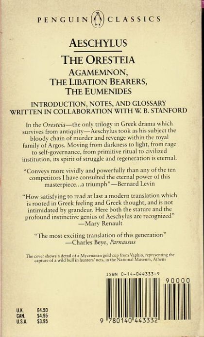 In the Oresteia Aeschylus addressed the bloody chain of murder and revenge within the royal family of Argos. As they move from darkness to light, from rage to self-governance, from primitive ritual to civilized institution, their spirit of struggle and regeneration becomes an everlasting song of celebration. In Agamemnon, a king's decision to sacrifice his daughter and turn the tide of war inflicts lasting damage on his family, culminating in a terrible act of retribution; The Libation Bearers deals with the aftermath of Clytemnestra's regicide, as her son Orestes sets out to avenge his father's death; and in The Eumenides, Orestes is tormented by supernatural powers that can never be appeased. Forming an elegant and subtle discourse on the emergence of Athenian democracy out of a period of chaos and destruction, The Oresteia is a compelling tragedy of the tensions between our obligations to our families and the laws that bind us together as a society. The only trilogy in Greek drama that survives from antiquity, Aeschylus' The Oresteia is translated by Robert Fagles with an introduction, notes and glossary written in collaboration with W.B. Stanford in Penguin Classics. For more than seventy years, Penguin has been the leading publisher of classic literature in the English-speaking world. With more than 1,700 titles, Penguin Classics represents a global bookshelf of the best works throughout history and across genres and disciplines. Readers trust the series to provide authoritative texts enhanced by introductions and notes by distinguished scholars and contemporary authors, as well as up-to-date translations by award-winning translators.