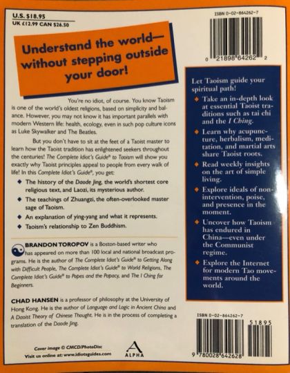 You’re no idiot, of course. You know Taoism is one of the world’s oldest religions, based on simplicity and balance. However, you may not know it has important parallels with modern Western life: health, ecology, even in such pop culture icons as Luke Skywalker and The Beatles. But you don’t have to sit at the feet of a Taoist master to learn how the Taoist tradition has enlightened seekers throughout the centuries! The Complete Idiot’s Guide® to Taoism will show you exactly why Taoist principles appeal to people from every walk of life! In this Complete Idiot’s Guide®, you get: --The history of the Daode Jing, the world’s shortest core religious text, and Laozi, its mysterious author. --The teachings of Zhuangzi, the often-overlooked master sage of Taoism. --An explanation of ying-yang and what it represents. --Taoism’s relationship to Zen Buddhism.