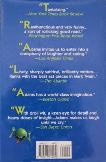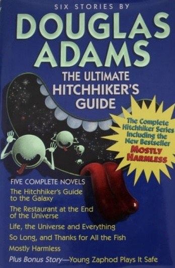 Finally, here they are in one outrageous volume--all six bestselling Hitchhiker stories by Douglas Adams, including his latest addition to the collection, "Mostly Harmless." Plus, you'll find a perplexingly frank introduction by the author himself, giving a behind-the-scenes look at the books and the zany radio series that inspired them. "The Hitchhiker's Guide to the Galaxy: " Arthur Dent, mild-mannered, out-to-lunch kind of guy, is plucked from Earth just before it is demolished to make way for a hyperspace bypass. Towel in hand, he begins his journey through space and time with his rescuer Ford Prefect, a traveling researcher for the "Guide." "The Restaurant at the End of the Universe: " The floor show is Doomsday while Arthur and Ford dine with Zaphod Beeblebrox, well-appendaged, ex-head honcho of the Universe, and Trillian, his human girlfriend. "Life, the Universe and Everything: " Everything important and then some is examined in this third book, when Arthur Dent and his companions find they must avert Armageddon and save the Universe for life as we know it (or think we know it!) "So Long, and Thanks for All the Fish: " Galaxy-weary space traveler Arthur Dent returns to Earth with his new voidoid gang to discover that it has been mysteriously reinstated. "Young Zaphod Plays It Safe: " The two-headed hero travels to the depths of the ocean floor to investigate the mysterious destruction of the ship that "could one hundred percent positively never crash." "Mostly Harmless: " Once again, Arthur Dent tries to return to Earth, but instead settles for an honorary position as master sandwich maker.If you're just discovering Douglas Adams's galactic gangbuster of aseries, don't panic: "The Ultimate Hitchhiker's Guide: " is your chance to have it all! (Towel not included.)