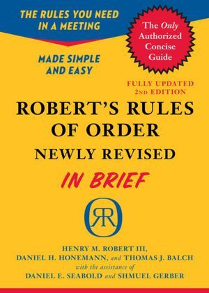 All the rules you need in a meeting made simple and easy--the only authorized concise guide on parliamentary procedureRobert's Rules of Order, Newly Revised, In Brief was first published in 2005 to meet the need for a simple and short book on parliamentary procedure. This second edition of In Brief is now updated and revised to match the new full edition of Robert's Rules of Order, Newly Revised. Written by the same authorship team behind the officially sanctioned Robert's Rules of Order, this concise, user-friendly edition takes readers through the rules most often needed at meetings-from debates to amendments to nominations. With sample dialogues and a guide to using the complete edition, Robert's Rules of Order, Newly Revised, In Brief is the essential handbook for parliamentary proceedings.
