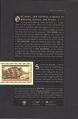 The chronicle of two readers finding each other, and their deadly struggle with forces beyond their understanding--all within the margins of a book conceived by Star Wars: The Force Awakens director J.J. Abrams and written by award-winning novelist Doug Dorst. The book: Ship of Theseus, the final novel by a prolific but enigmatic writer named V.M. Straka, in which a man with no past is shanghaied onto a strange ship with a monstrous crew and launched onto a disorienting and perilous journey. The writer: Straka, the incendiary and secretive subject of one of the world's greatest mysteries, a revolutionary about whom the world knows nothing apart from the words he wrote and the rumors that swirl around him. The readers: Jennifer and Eric, a college senior and a disgraced grad student, both facing crucial decisions about who they are, who they might become, and how much they're willing to trust another person with their passions, hurts, and fears. _______________________________________________________________________________ One book. Two readers. A world of mystery, menace, and desire. A young woman picks up a book left behind by a stranger. Inside it are his margin notes, which reveal a reader entranced by the story and by its mysterious author. She responds with notes of her own, leaving the book for the stranger, and so begins an unlikely conversation that plunges them both into the unknown. The book: Ship of Theseus, the final novel by a prolific but enigmatic writer named V.M. Straka, in which a man with no past is shanghaied onto a strange ship with a monstrous crew and launched onto a disorienting and perilous journey. The writer: Straka, the incendiary and secretive subject of one of the world's greatest mysteries, a revolutionary about whom the world knows nothing apart from the words he wrote and the rumors that swirl around him. The readers: Jennifer and Eric, a college senior and a disgraced grad student, both facing crucial decisions about who they are, who they might become, and how much they're willing to trust another person with their passions, hurts, and fears.