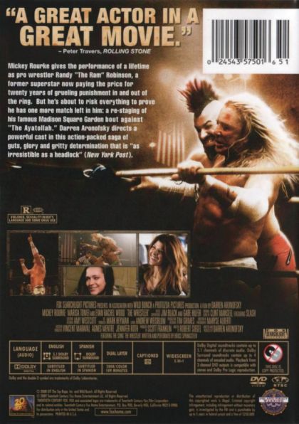 Aging wrestler Randy "The Ram" Robinson is long past his prime but still ready and rarin' to go on the pro-wrestling circuit. After a particularly brutal beating, however, Randy hangs up his tights, pursues a serious relationship with a long-in-the-tooth stripper, and tries to reconnect with his estranged daughter. But he can't resist the lure of the ring and readies himself for a comeback.