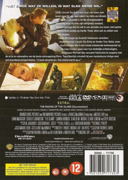 In 2019, Lincoln Six-Echo is a resident of a seemingly "Utopian" but contained facility. Like all of the inhabitants of this carefully-controlled environment, Lincoln hopes to be chosen to go to The Island — reportedly the last uncontaminated location on the planet. But Lincoln soon discovers that everything about his existence is a lie.