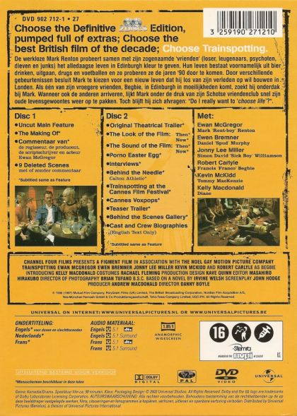 Heroin addict Mark Renton stumbles through bad ideas and sobriety attempts with his unreliable friends -- Sick Boy, Begbie, Spud and Tommy. He also has an underage girlfriend, Diane, along for the ride. After cleaning up and moving from Edinburgh to London, Mark finds he can't escape the life he left behind when Begbie shows up at his front door on the lam, and a scheming Sick Boy follows.