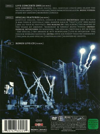 Within Temptation's tour DVD in support of their album, "The Silent Force." The Silent Force Tour is a double DVD which was released on November 18, 2005. In addition to the standard double DVD release, the deluxe edition includes a bonus CD. The main concert features the band playing at the Java-eiland, Amsterdam. Three songs that were performed at the concert were not included on the release ("Somewhere", "Enter" and "Running Up that Hill"). The song "World of Make Believe" was also scheduled to be played, but keyboardist Martijn Spierenburg felt "unprepared" to play this song live. Live concert at the Java Island, Amsterdam,live videos from two European summer festivals (Helsinki, Finland, 2005 and Rock Werchter, Belgium, 2005) and the three music videos of off the album The Silent Force ("Stand My Ground", "Memories" and "Angels"). Disc 2 consists of Backstage footage, making of documentaries, Impressions and Interviews and extras.