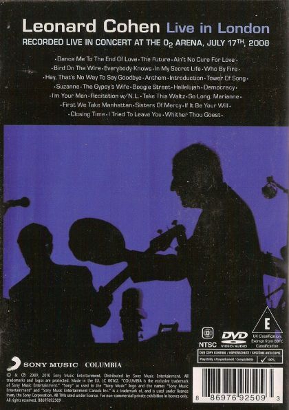 On March 31, 2009, Leonard Cohen released Live In London, his first new recording since 2004’s Dear Heather. This collection available in DVD and 2 CD formats was recorded live on July 17, 2008 at London’s 02 Arena, one of Europe’s largest indoor venues.