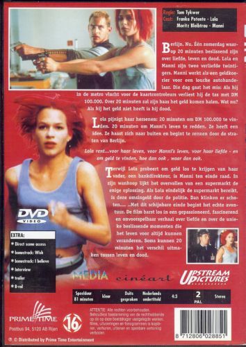 Manni heeft een partij smokkelwaar omgeruild tegen een zak geld die hij zo meteen aan zijn 'baas' Ronnie moet afleveren. In ruil krijgt hij daarvoor een percentje. Manni stapt in de metro maar panikeert wanneer er politie in hetzelfde rijtuig verschijnt. Tijdens zijn vlucht beseft hij dat hij de zak met geld in het metrostel heeft laten liggen. Een zwerver vindt de zak en gaat ermee aan de haal. Totaal overstuur belt Manni naar zijn vriendin Lola. Zij heeft slechts 20 minuten om het ontbrekende geld te voorschijn te toveren. Het meisje start een race tegen de klok om haar vriend van een gewisse dood te redden. Lola besluit naar haar vader te gaan, die bij een bank werkt.