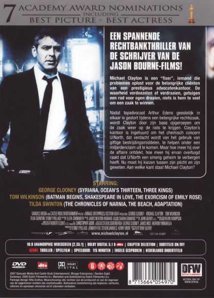 Michael Clayton is een gehaaide advocaat die werkzaam is bij één van de grootste kantoren van New York. Zijn firma houdt zich bezig met de verdediging van megaconcern U/North, dat in de clinch ligt met kleine boeren die een schadeclaim tegen het bedrijf hebben ingediend. Zo goed als Clayton is in zijn werk, zo'n puinhoop is het in zijn privé-leven. Hij is gescheiden, heeft een ingewikkelde relatie met zijn zoontje, is een verwoed pokeraar en heeft problemen met zijn verslaafde broer. Wanneer zijn vriend en collega Arthur, de architect van de verdediging van U/North, paranoïde verdrag gaat vertonen en het proces van U/North begint te saboteren, heeft Clayton er nóg een probleem bij en wordt hij geconfronteerd met zijn geweten en moraal.