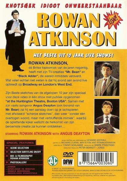 Rowan Atkinson and Angus Deayton in Boston doing a live performance of the same styles of humor we've seen in Mr. Bean and Blackadder. Included are lessons on Shakespearean acting, a school headmaster meeting with the father of a boy he's beaten to death, and tips for having a successful date.