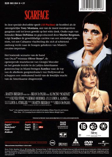 After getting a green card in exchange for assassinating a Cuban government official, Tony Montana stakes a claim on the drug trade in Miami. Viciously murdering anyone who stands in his way, Tony eventually becomes the biggest drug lord in the state, controlling nearly all the cocaine that comes through Miami. But increased pressure from the police, wars with Colombian drug cartels and his own drug-fueled paranoia serve to fuel the flames of his eventual downfall.