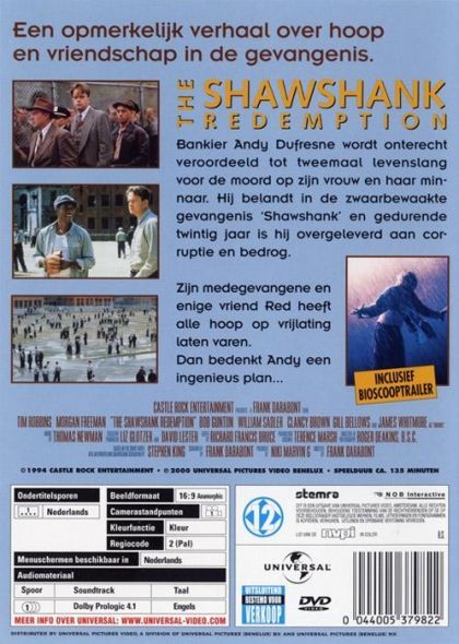 Andy Dufresne (Tim Robbins) betrapt zijn vrouw met een ander en wordt vervolgens beschuldigd van de moord op zijn vrouw en haar minnaar. Hij houdt vol dat hij onschuldig is, maar krijgt toch tweemaal levenslang in de strenge gevangenis Shawshank. Hij wordt vrienden met een zwarte gevangene (Morgan Freeman) die spullen kan regelen. Er zijn twee dingen die hem echt op de been houden: hoop en een poster van Rita Hayworth.