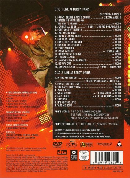 Phil Collins: Finally...The First Final Farewell documents the Paris date on his last set of live shows, in which the internationally famous musician was joined by a superb backing band for a set of his greatest songs. Selections include "In the Air Tonight," "Against All Odds," "Sussudio," "Don't Lose My Number," "Take Me Home," "One More Night," and many more.