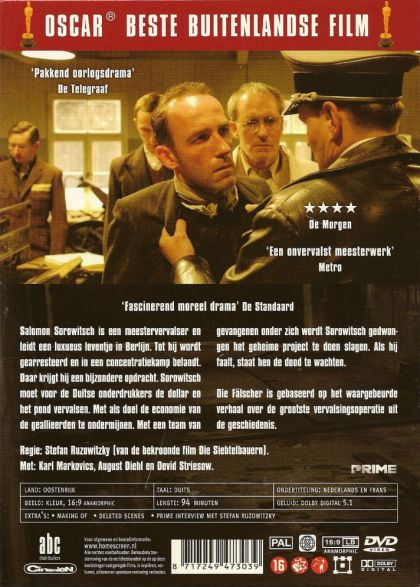 Berlijn 1936. Sorowitsch is de koning der valsemunters. In zijn wereld van misdadigers, gigolo's en lichtekooien is het leven niet meer dan een spel... en het geld dat hij daarvoor nodig heeft, drukt hij gewoon zelf. Op een dag wordt hij verraden. Hij wordt opgepakt door commissaris Herzog en naar het concentratiekamp van Mauthausen gedeporteerd. Daar komt het er op neer om zijn eigen vel te redden tegen elke prijs. Sorowitsch vreest het ergste wanneer hij in 1944 naar Sachsenhausen wordt overgebracht. Maar het leven biedt hem een laatste kans. Bij aankomst wordt hij opgewacht door niemand minder dan commissaris Herzog die er een geheime missie leidt. Sorowitsch en een groepje zorgvuldig uitgezochte professionals moeten een heel pak buitenlands geld vervalsen. Het doel van deze operatie is om de economie van de geallieerden te ondermijnen. Dit stelt hen voor een ondraaglijk moreel dilemma. Plots gaat het niet meer om overleven maar om geweten.