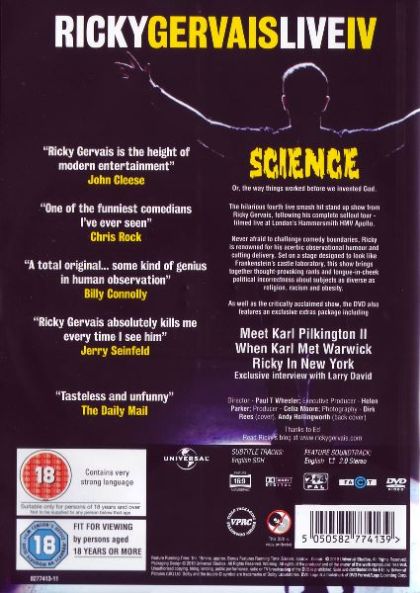 Ricky Gervais Live IV Science or the way things worked before we invented God. The hilarious fourth live smash hit stand up show from Ricky Gervais, following his complete sell out tour - filmed live at London's Hammersmith HMV Apollo